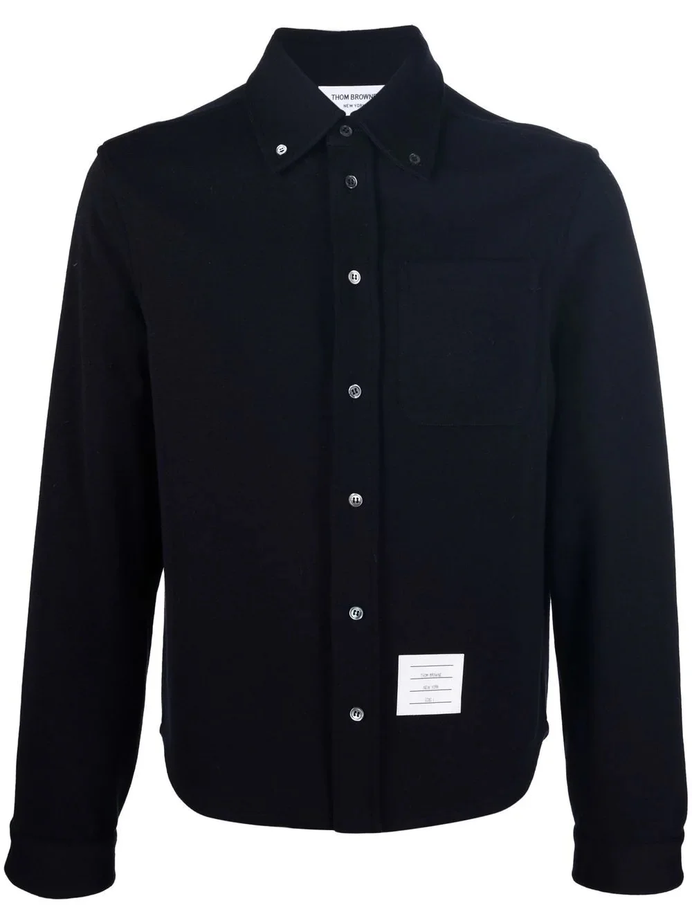 long-sleeve wool shirt midnight blue virgin wool logo patch to the front RWB stripe lining classic collar front button fastening long sleeves buttoned cuffs Made in Italy Composition Virgin Wool 100% SIZE & FIT Model measurements Height 6 ft 2 in(1.89 m) Bust/Chest 37.79 in(96 cm) Hips 37 in(94 cm) Waist 29.92 in(76 cm) FittingInformation This piece fits true to size. We recommend you get your regular size Cut for a loose fit Made with a mid-weight fabric