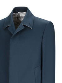 mac bal collar overcoat Highlights - Navy blue cotton mac bal collar overcoat from thom browne featuring a classic collar, long sleeves and a button fastening. please note the print may differ slightly from the item pictured. Made in Italy Composition Outer: Cotton 100% Lining: Cupro 100%