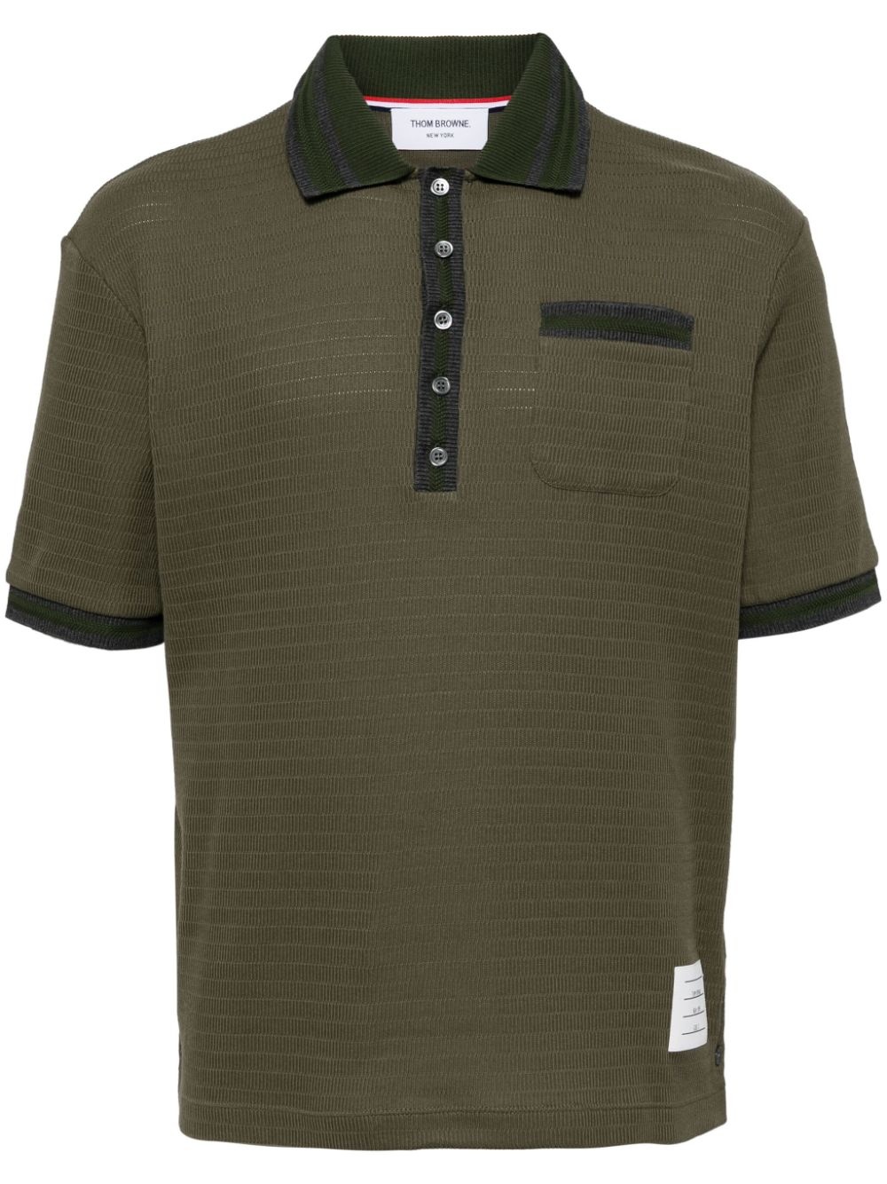 open-stitch cotton polo shirt Highlights - Olive green - Cotton - Knitted construction - Contrasting trim - Logo patch to the front - Polo collar - Front button placket - Short sleeves - Ribbed cuffs - Chest patch pocket - Straight hem Made in Italy Composition Cotton 100% SIZE & FIT Measurement LENGTH 27.16 in(69 cm) SLEEVE LENGTH 18.5 in(47 cm) Shoulder Width 18.11 in(46 cm) FittingInformation Designed for a regular fit, this polo shirt offers a comfortable loose fit throughout the body Made with a midweight knit, this piece offers some stretch This piece fits true to size – take your usual size Washing instructions Hand Wash