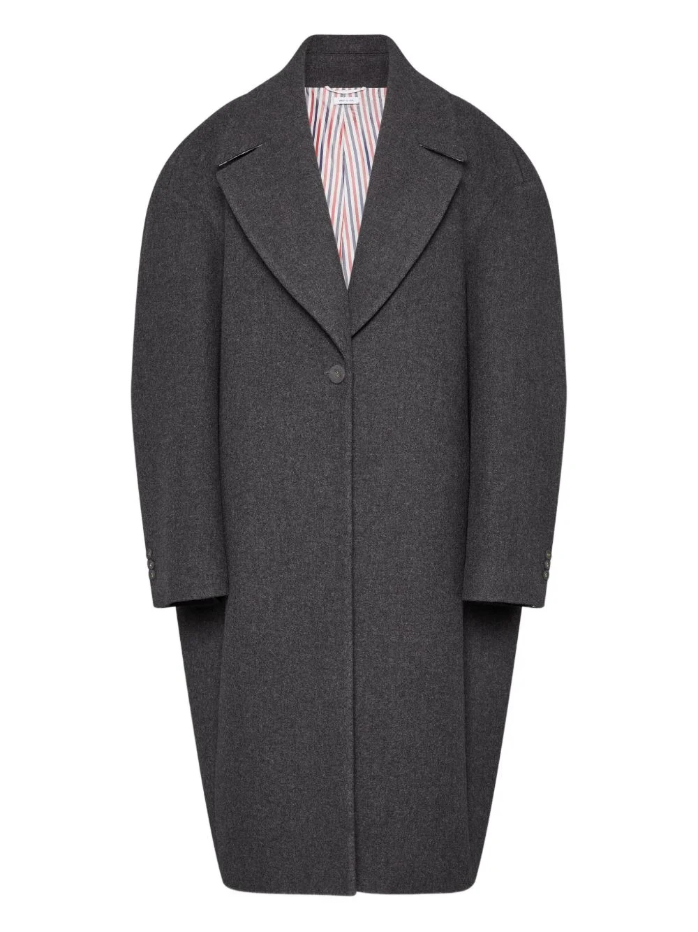 Melton cocoon coat Highlights - Dark grey - Long sleeve - Button fastening - Grosgrain loop tab - Notched lapel Made in Italy Composition Fabric 100% Washing instructions Read Manufacturer Guidelines