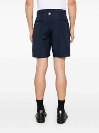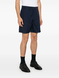 mid-rise chino shorts Highlights - Navy blue - Interlock twill weave - Pressed crease - Signature grosgrain loop tab - Mid-rise - Belt loops - Concealed front fastening - Two side slit pockets - Two rear welt pockets - Straight leg - Thigh-length Made in Italy Composition Polyester 65%, Cotton 35% SIZE & FIT Model measurements Height 6 ft 1 in(1.86 m) Bust/Chest 37.4 in(95 cm) Hips 36.22 in(92 cm) Waist 29.52 in(75 cm) Measurement FRONT RISE 12.99 in(33 cm) WAIST 34.64 in(88 cm) FittingInformation Designed for a straight-leg fit, offering an unrestricted and comfortable fit over the leg Made from a midweight non-stretch fabric This piece fits true to size – take your usual size