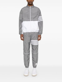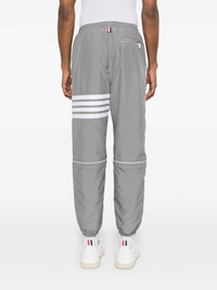 mid-rise ripstop track trousers Highlights - Medium grey - Ripstop texture - Panelled design - Signature 4-bar stripe - Logo patch to the side - Signature grosgrain loop tab - Piped-trim detailing - Mid-rise - Elasticated drawstring waistband - Two side zip-fastening pockets - Rear zip-fastening pocket - Tapered leg - Elasticated ankles Made in Italy Composition Fabric 100% SIZE & FIT Model measurements Height 6 ft 2 in(1.88 m) Bust/Chest 35.03 in(89 cm) Hips 35.82 in(91 cm) Waist 27.95 in(71 cm) FittingInformation Designed for a relaxed tapered leg, allowing a comfortable loose fit above the knee with a closer fit towards the calves The elasticated waist allows for a comfortable fit This piece fits true to size – take your usual size