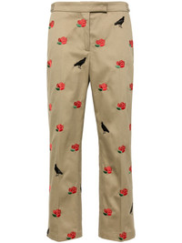 mid-rise tailored twill trousers Highlights - Camel brown - Cotton - Twill weave - All-over rose and raven embroidery - Signature grosgrain loop tab - Pressed crease - Mid-rise - Concealed front fastening - Buttoned waist tabs - Two side slit pockets - Two rear button-fastening jetted pockets - Tapered leg - Tailored cut - Cropped leg Made in Italy Composition Cotton 100% SIZE & FIT Model measurements Height 5 ft 10 in(1.77 m) Bust/Chest 33.07 in(84 cm) Hips 37 in(94 cm) Waist 24.8 in(63 cm) FittingInformation Designed for a straight-leg fit, these trousers allow for a close fit at the waist and an unrestricted, comfortable fit over the leg Cropped in length Made from a midweight non-stretch fabric This piece fits true to size – take your usual size Washing instructions Dry Clean Only