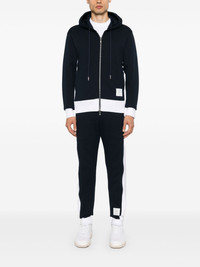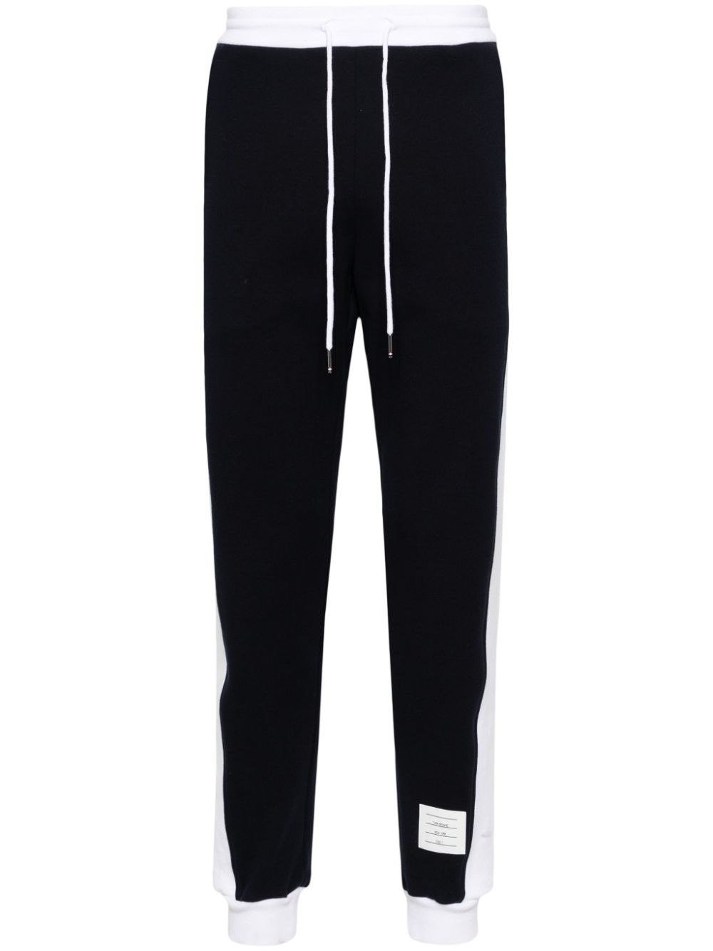 mid-rise track trousers Highlights - Blue/white - Cotton - Jersey texture - Colour-block design - Logo patch to the side - Signature 4-bar stripe - Signature grosgrain loop tab - Mid-rise - Elasticated drawstring waistband - Two side slit pockets - Tapered leg - Elasticated ankles Made in Italy Composition Cotton 100% SIZE & FIT Model measurements Height 6 ft 1 in(1.86 m) Bust/Chest 37.4 in(95 cm) Hips 36.22 in(92 cm) Waist 29.52 in(75 cm) FittingInformation Designed for a tapered leg, offering a loose unrestricted fit over the leg with a closer fit towards the ankle The ribbed hem at the ankle offers a close, comfortable fit Made from a midweight non-stretch fabric, this piece offers minimal elasticity when worn This piece fits true to size – take your usual size