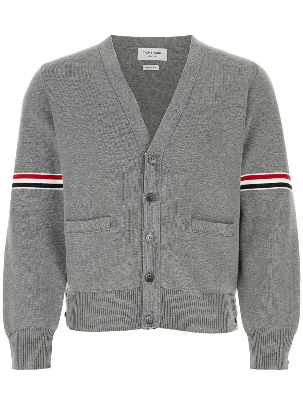 Milano stitch stripe armband cardigan There are approximately eight million things to talk about when it comes to this Thom Browne cardigan, but we'd like to concentrate on the Milano stitching. If you look closely, the textured weaving is the result of two yarns being knit diagonally. We always knew that, and definitely didn't just Google it out of amazement. Nuh-uh. Highlights - Light grey - Cotton - Front button fastening - Two front patch pockets - Signature 4-bar stripe - Signature 4-bar tab - Long sleeves - Buttoned cuffs - Side button fastening - Ribbed detailing Made in Italy Composition Cotton 100% SIZE & FIT FittingInformation This piece fits true to size. We recommend you get your regular size Cut for a relaxed fit Made with a mid-weight fabric Washing instructions Dry Clean Only