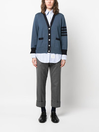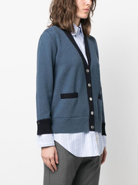 Milano stitch V-neck cardigan blue/navy blue cotton fine knit side stripe detailing tonal design long sleeves V-neck front button fastening straight hem two side pouch pockets Made in Italy Composition Cotton 100% SIZE & FIT Model measurements Height 5 ft 10 in(1.79 m) Bust/Chest 32.67 in(83 cm) Hips 34.25 in(87 cm) Waist 24.4 in(62 cm) Measurement BUST 35.43 in(90 cm) LENGTH 29.13 in(74 cm) WAIST 35.82 in(91 cm) SLEEVE LENGTH 17.71 in(45 cm) Shoulder Width 14.17 in(36 cm) FittingInformation Designed to be unstructured, offering a loose fit throughout Made with a midweight knit, this piece offers some stretch This piece fits true to size – take your usual size Washing instructions Dry Clean Only