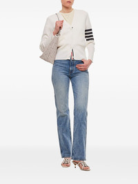 White Milano Stitch Fine Merino Wool 4-bar Classic V-neck Cardigan