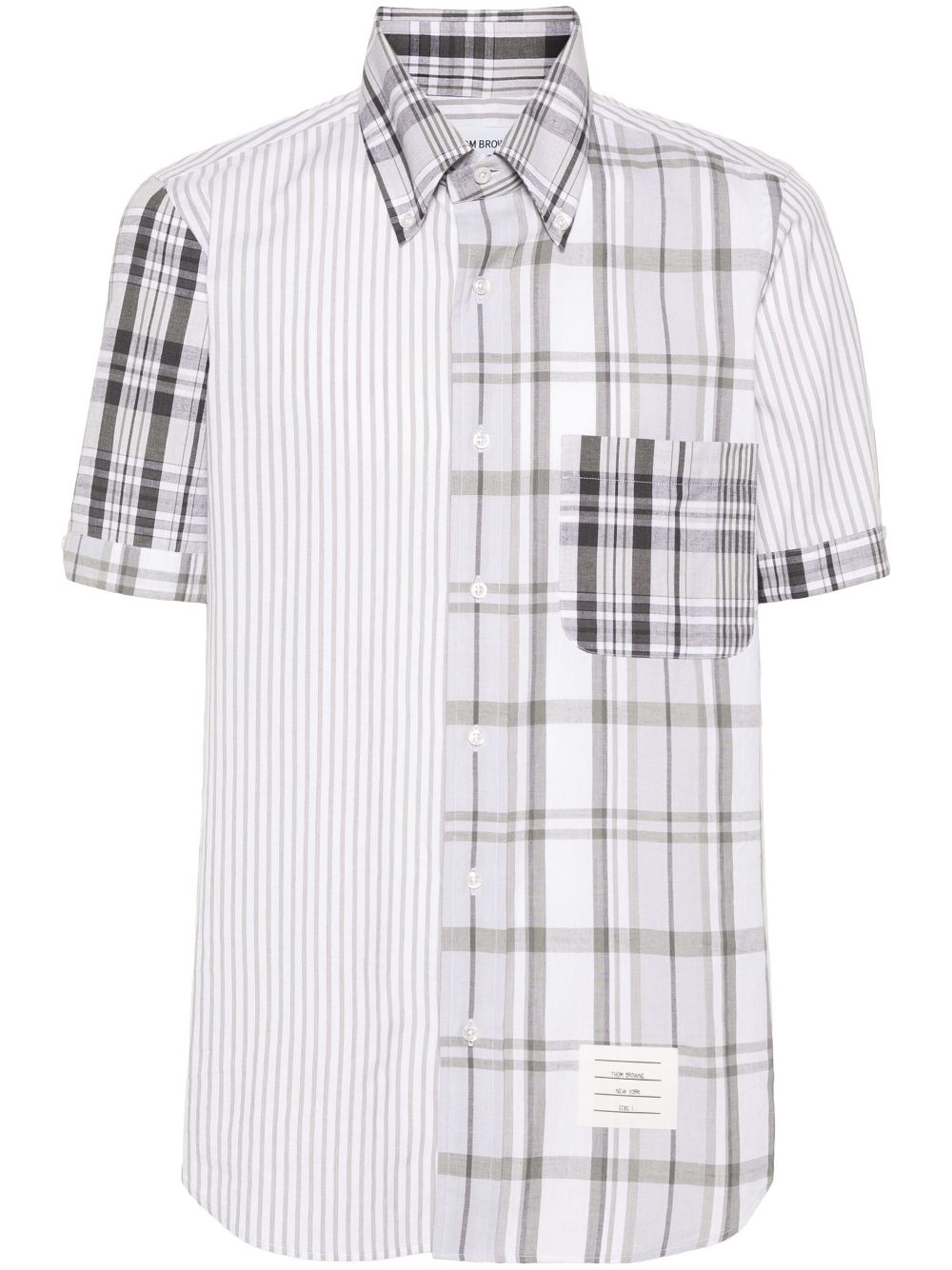 mix-pattern cotton shirt Highlights - Grey/white - Cotton - Mix print - Checked and striped patterns - Logo patch to the front - Signature grosgrain loop tab - Button-down collar - Front button fastening - Short sleeves - Chest patch pocket - Curved hem Made in Italy Composition Cotton 100% SIZE & FIT Model measurements Height 6 ft 2 in(1.88 m) Bust/Chest 35.03 in(89 cm) Hips 35.82 in(91 cm) Waist 27.95 in(71 cm) FittingInformation Designed for a regular fit, allowing for a comfortably loose fit throughout the body Made from a midweight non-stretch fabric This piece fits true to size – take your usual size