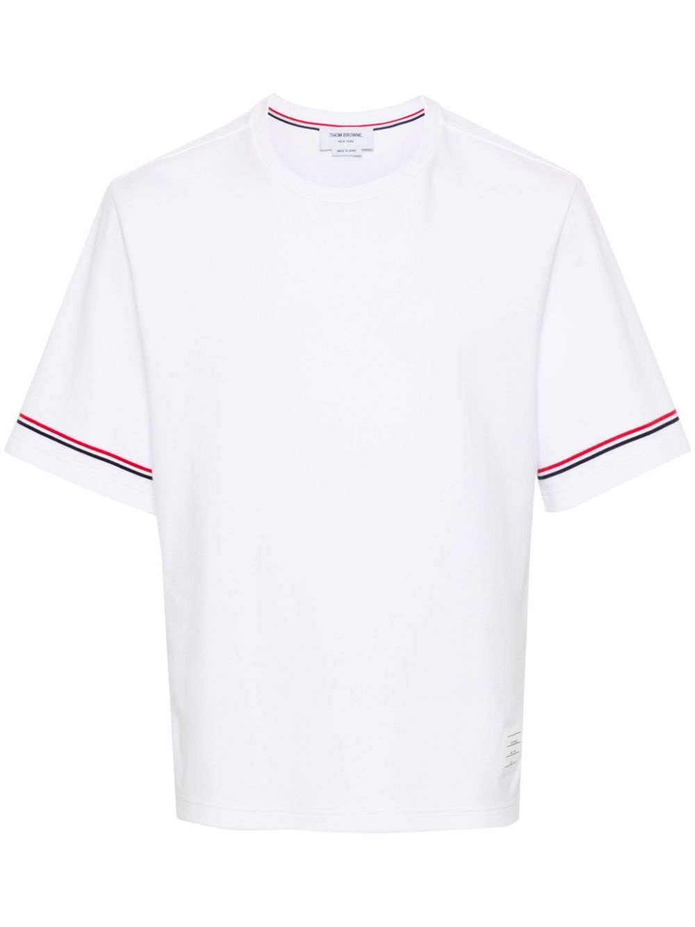 RWB-stripe T-shirt Highlights - Red/white/blue - Cotton - Jersey texture - Rwb stripe - Ribbed crew neck - Short sleeves - Short side slits - Logo tag - Signature grosgrain side tabs - Signature grosgrain loop tab - High-low hem Imported Composition Cotton 100% SIZE & FIT Model measurements Height 6 ft 1 in(1.86 m) Bust/Chest 37.4 in(95 cm) Hips 36.22 in(92 cm) Waist 29.52 in(75 cm) Measurement CHEST 46.45 in(118 cm) SLEEVE LENGTH 21.65 in(55 cm) LENGTH 29.92 in(76 cm) Shoulder Width 20.07 in(51 cm) FittingInformation Designed for a boxy fit, intended for a loose fit throughout Made from a midweight non-stretch fabric, this piece offers minimal elasticity when worn This piece fits true to size – take your usual size