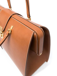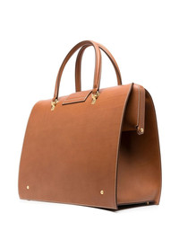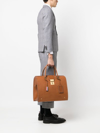 Mr. Thom holdall bag A signature silhouette for Thom Browne, the Mr. Thom bag is crafted from smooth call leather and lambskin in a rich brown colour and elevated with polished gold-tone hardware. Fastening at the front with a clasp, this spacious accessory is lined with the house's RWB stripe motif for an instantly recognisable appearance. Made in Italy Composition Lining: Lamb Skin 100%, Polyester 100% Outer: Calf Leather 100% SIZE & FIT Model measurements Height 6 ft 2 in(1.87 m) Bust/Chest 36.41 in(92.5 cm) Hips 35.43 in(90 cm) Waist 29.52 in(75 cm) Measurement DEPTH 7.48 in(19 cm) HANDLE 5.9 in(15 cm) HEIGHT 13.77 in(35 cm) WIDTH 15.74 in(40 cm)