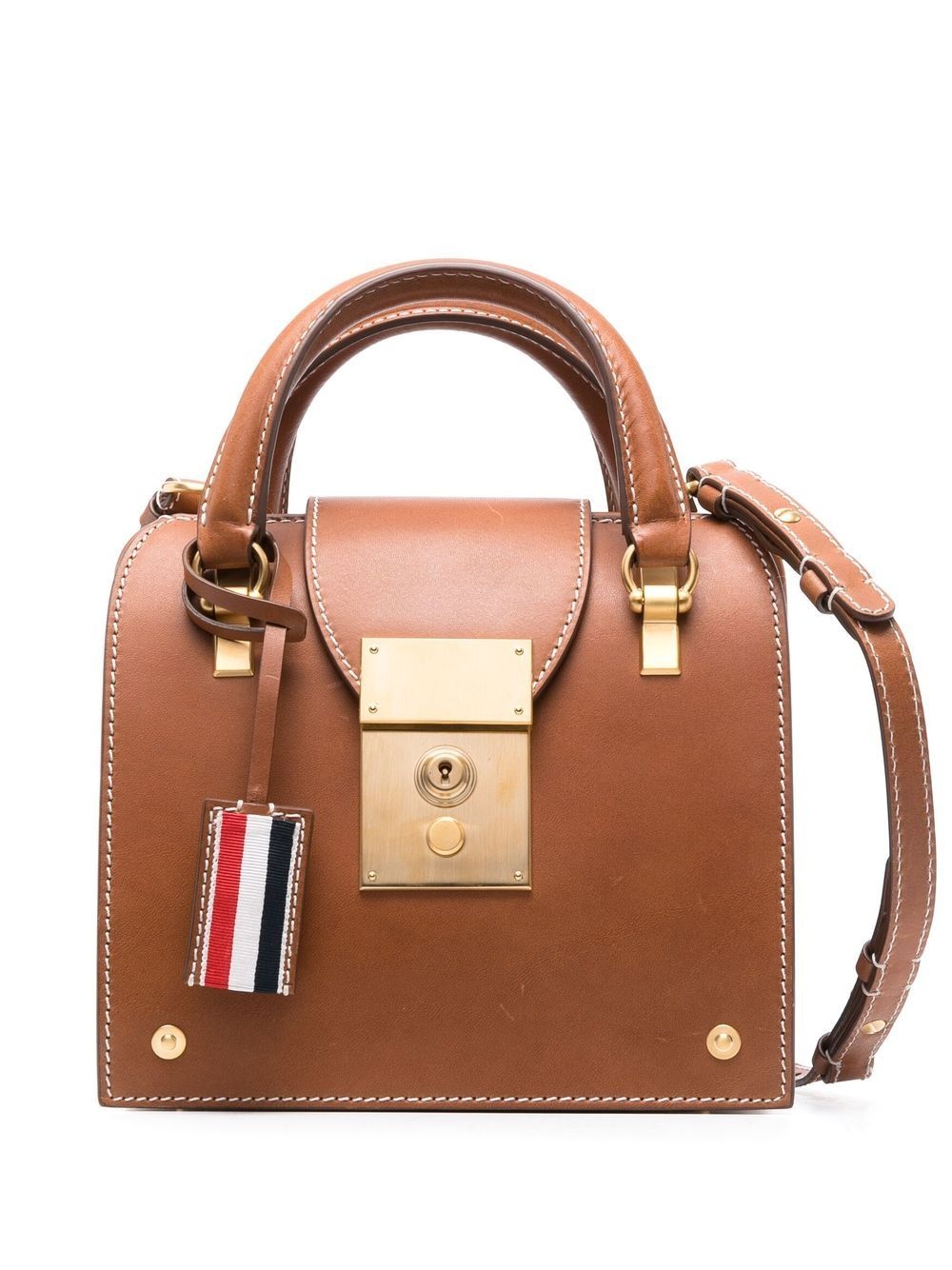 Mrs. Thom mini tote bag brown calf leather/lambskin gold-tone hardware signature 4-Bar tab foldover top two rolled top handles adjustable detachable shoulder strap Made in Italy Composition Lining: Polyester 100%, Lambskin 100% Outer: Calf Leather 100% SIZE & FIT Model measurements Height 5 ft 10 in(1.79 m) Bust/Chest 32.67 in(83 cm) Hips 34.25 in(87 cm) Waist 24.4 in(62 cm) Measurement DEPTH 4.33 in(11 cm) HANDLE 3.14 in(8 cm) HEIGHT 7.08 in(18 cm) STRAP 23.62 in(60 cm) WIDTH 7.48 in(19 cm)