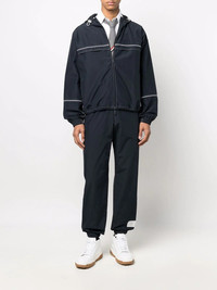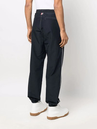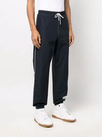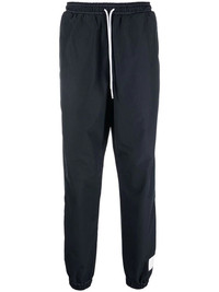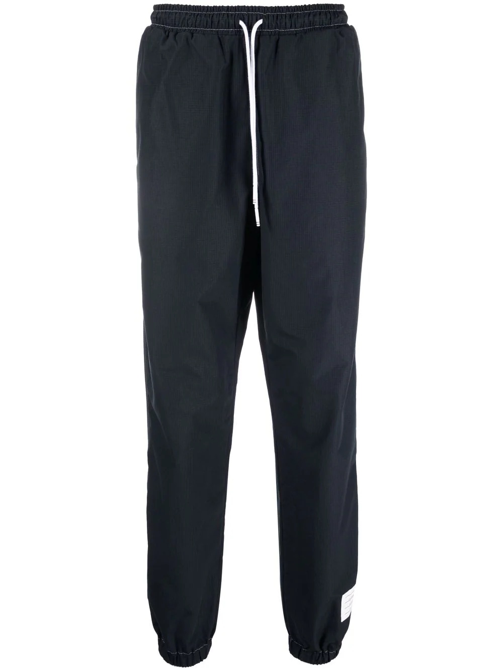 name-tag track pants A part of Thom Browne’s latest collection, these track pants celebrate one of the label’s most famed motifs. Boasting a jersey construction, the pair is accented with a signature name tag to the left leg. Made in Italy Composition Cotton 62%, Nylon 38% SIZE & FIT Model measurements Height 6 ft 2 in(1.87 m) Bust/Chest 38.18 in(97 cm) Hips 36.61 in(93 cm) Waist 29.13 in(74 cm) Measurement INSIDE LEG 29.52 in(75 cm) FRONT RISE 12.79 in(32.5 cm) FittingInformation This piece fits true to size. We recommend you get your regular size Designed to be loose over the leg with a fitted waist and hem Made with a mid-weight non-stretch fabric