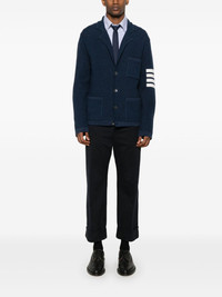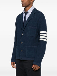 notched-lapels drop-shoulder cardigan Highlights - Navy blue - Linen-cotton blend - Knitted construction - Signature 4-bar stripe - Signature grosgrain loop tab - Ribbed trim - Notched lapels - Front button fastening - Drop shoulder - Long sleeves - Buttoned cuffs - Chest patch pocket - Two side patch pockets - Straight hem Made in Italy Composition Linen/Flax 68%, Cotton 32% SIZE & FIT Model measurements Height 6 ft 2 in(1.88 m) Bust/Chest 35.03 in(89 cm) Hips 35.82 in(91 cm) Waist 27.95 in(71 cm) FittingInformation Designed for a regular fit, allowing for a comfortably loose fit throughout the body Made from a midweight non-stretch fabric, this piece offers minimal elasticity when worn This piece fits true to size – take your usual size