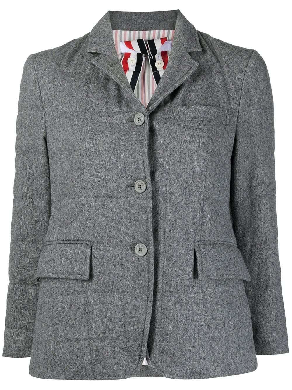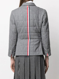 padded classic sport coat Sartorial elegance, courtesy of Thom Browne. Crafted from wool, this classic sport coat was filled with down so that you stay warm while you look impeccably dressed. Form Made in Italy Composition Wool 45%, Goose Down 40%, Feather 10%, Cashmere 5% SIZE & FIT Model measurements Height 5 ft 10 in(1.79 m) Bust/Chest 32.67 in(83 cm) Hips 35.03 in(89 cm) Waist 24.8 in(63 cm) FittingInformation This piece fits true to size. We recommend you get your regular size Cut for a slim fit Made with a mid-weight non-stretch fabric Washing instructions Dry Clean Only