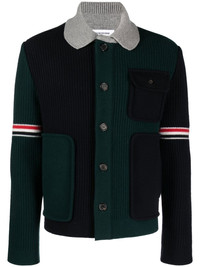 patchwork wool cardigan dark green wool knitted construction patchwork design signature 4-Bar stripe logo patch to the rear ribbed collar front button fastening long sleeves Made in Italy Composition Outer: Wool 100% Lining: Cupro 100% SIZE & FIT Model measurements Height 6 ft 0 in(1.84 m) Bust/Chest 36.22 in(92 cm) Hips 35.43 in(90 cm) Waist 26.77 in(68 cm) FittingInformation This piece fits true to size. We recommend you get your regular size Cut for a loose fit Made with a mid-weight fabric Washing instructions Dry Clean Only