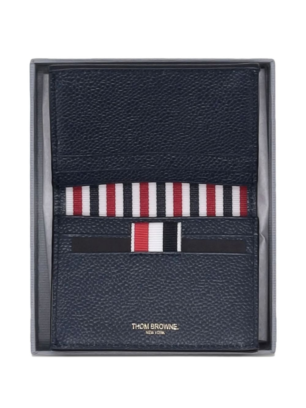 pebble grain stripes cardholder Highlights - Navy blue - Pebble grain texture - Stripes - Double design - Side detail Made in Italy Composition Outer: Calf Leather 100% Lining: Polyester 100%