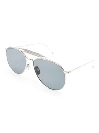 pilot-frame sunglasses Highlights - Silver-tone - Titanium/acetate - Pilot frame - Grey tinted lenses - Uv-protective lenses - Double bridge - Nose pads - Logo print at the arm - Straight arms - Curved tips - These glasses come with a protective case. Imported Composition Titanium 90%, Acetate 10% SIZE & FIT Measurement Arm Length 5.66 in(14.4 cm) Bridge Width 0.59 in(1.5 cm) Lens Diameter 2.44 in(6.2 cm) Total Width 5.7 in(14.5 cm)