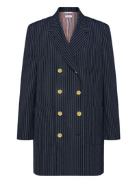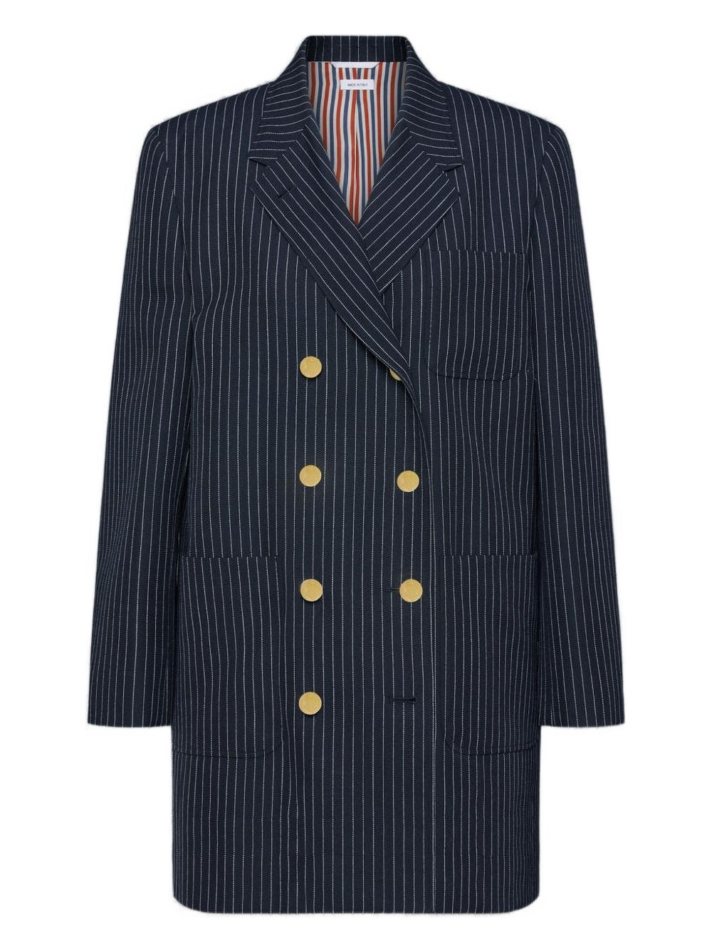 pinstripe double-breasted jacket Highlights - Navy blue - Pinstripe pattern - Double-breasted fastening - Patch pockets - Gold buttons - Long sleeves Made in Italy Composition Lining: Silk 100% Outer: Virgin Wool 97%, Polyester 3% Washing instructions Read Manufacturer Guidelines