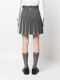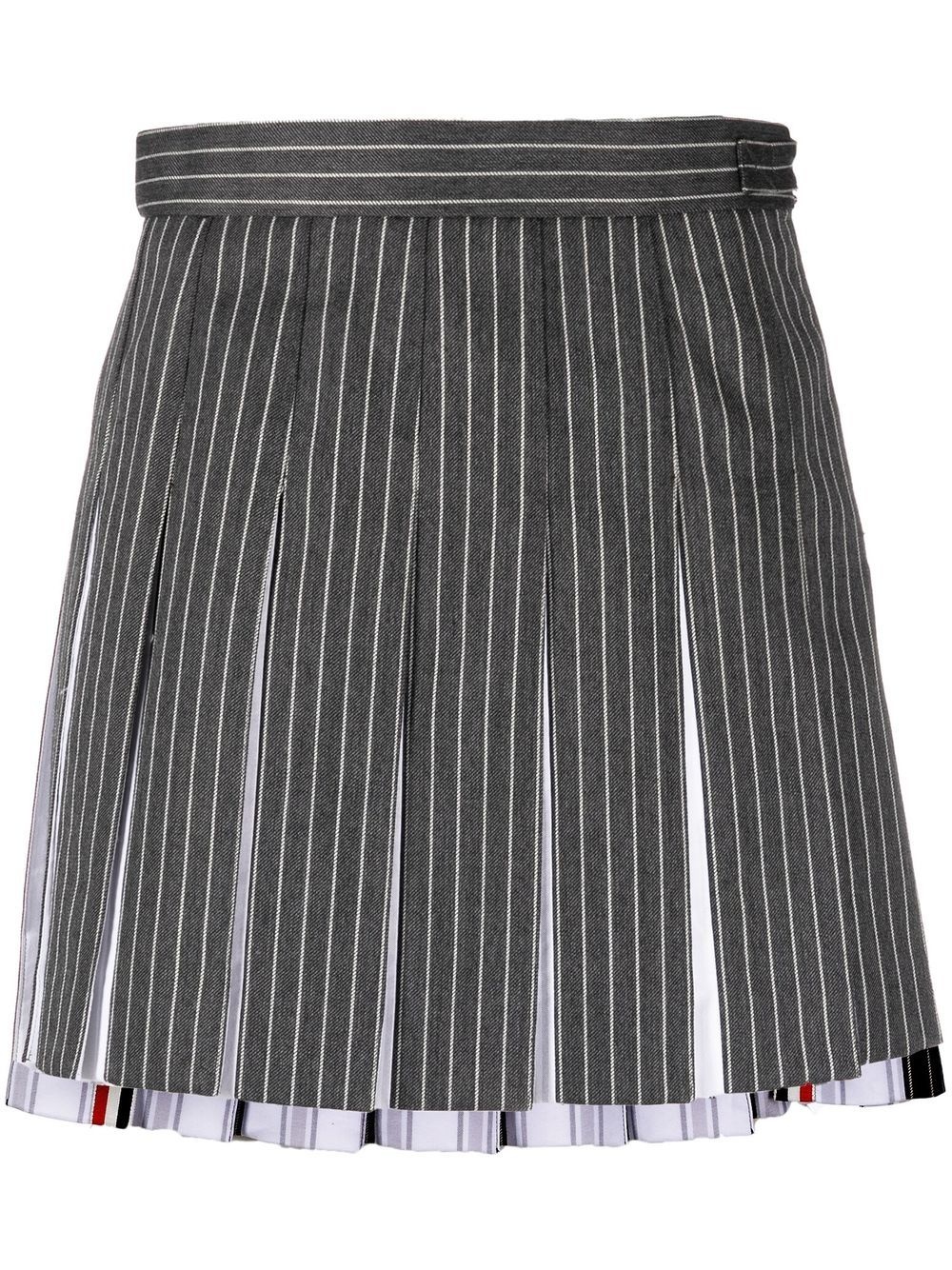 pinstripe-print pleated skirt ash grey wool pinstripe print fully pleated high-low hem Made in Italy Composition Outer: Wool 100%, Cotton 100% Lining: Cupro 100% SIZE & FIT Model measurements Height 5 ft 10 in(1.79 m) Bust/Chest 32.67 in(83 cm) Hips 34.25 in(87 cm) Waist 24.4 in(62 cm) FittingInformation This piece fits true to size. We recommend you get your regular size Designed to be fitted at the waist and hips, loose over the leg Made with a mid-weight non-stretch fabric Washing instructions Dry Clean Only