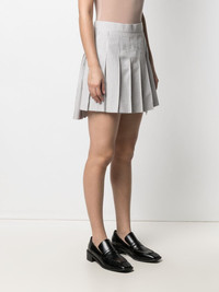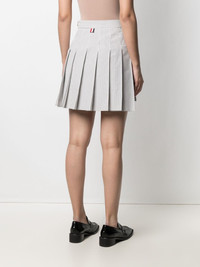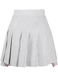 pinstriped pleated mini skirt School might have been a difficult phase, but who can deny that those uniforms were the peak of your early morning? Then take a trip to simpler times with this pinstriped pleated mini skirt from Thom Browne. With a box pleat design and crafted from white and medium grey cotton, it has a mini length and a lot of attitude. Like you, back in high school. Made in Italy Composition Outer: Cotton 100% Lining: Cupro 100% SIZE & FIT Model measurements Height 5 ft 10 in(1.79 m) Bust/Chest 31.88 in(81 cm) Hips 35.43 in(90 cm) Waist 23.62 in(60 cm) FittingInformation This piece fits true to size. We recommend you get your regular size Designed to be fitted at the waist and hips, loose over the leg Made with a mid-weight non-stretch fabric Washing instructions Dry Clean Only