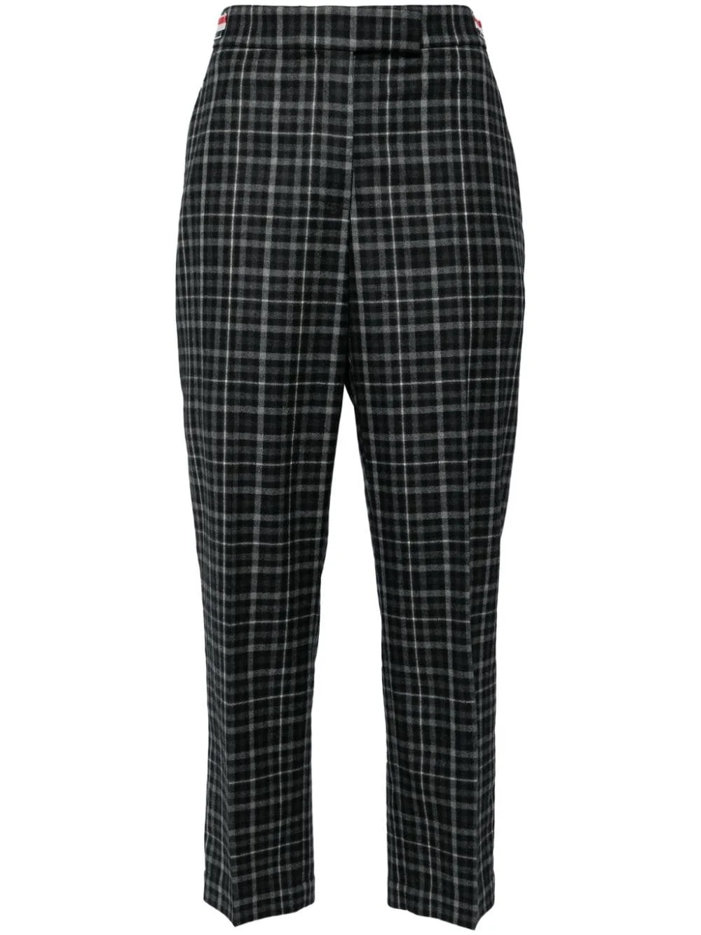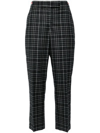 plaid-check tailored trousers Highlights - Charcoal grey/white - Wool - Plaid check pattern - Rwb stripe - Signature grosgrain loop tab - High waist - Concealed front fastening - Two rear button-fastening jetted pockets - Pressed crease - Tapered leg - Ankle-length Made in Italy Composition Wool 100% SIZE & FIT Model measurements Height 5 ft 10 in(1.77 m) Bust/Chest 30.7 in(78 cm) Hips 35.03 in(89 cm) Waist 23.62 in(60 cm) FittingInformation Designed for a straight-leg fit, these trousers allow for a close fit at the waist and an unrestricted, comfortable fit over the leg Cropped in length Made from a midweight non-stretch fabric This piece fits true to size – take your usual size