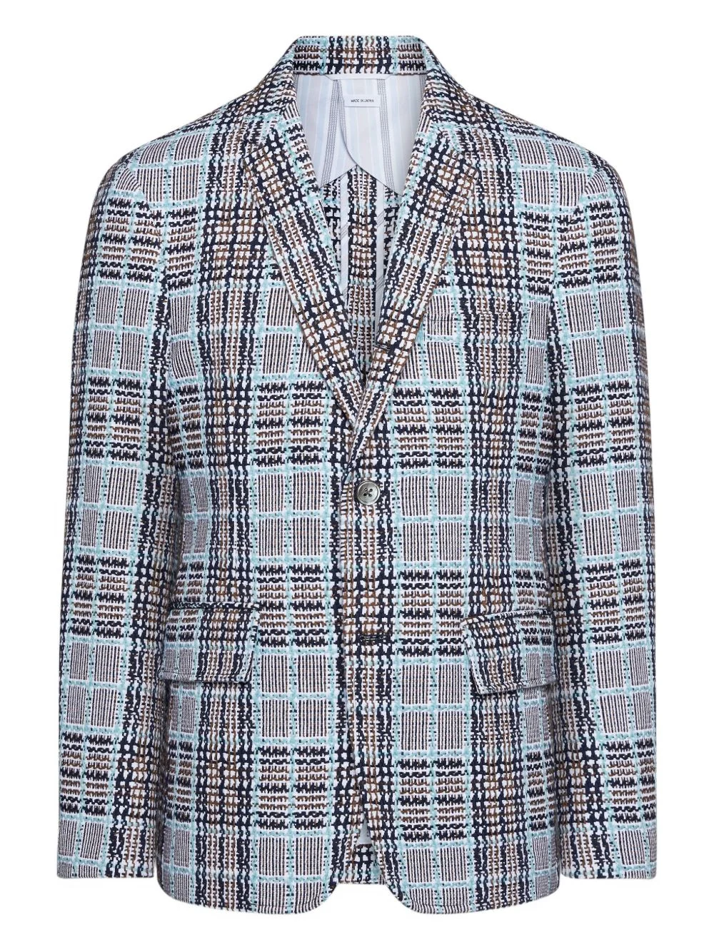 plaid-patterned blazer Highlights - Blue - Plaid pattern - Tweed texture - Front button fastening - Chest welt pocket Imported Composition Fabric 100% Washing instructions Read Manufacturer Guidelines