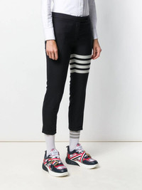 4-Bar Stripe skinny trousers Highlights - Look out for thom browne's iconic 4-bar stripe on these skinny cropped trousers. crafted from navy and white tones, they combine classic details with a modern silhouette. get the best of both worlds. featuring two back buttoned welt pockets, a skinny fit, a cropped length, a signature grosgrain loop tab and a 4-bar stripe. Made in Italy Composition Wool 100% SIZE & FIT Model measurements Height 5 ft 10 in(1.78 m) Bust/Chest 32.67 in(83 cm) Hips 35.82 in(91 cm) Waist 24.01 in(61 cm) FittingInformation This piece fits true to size. We recommend you get your regular size Cut for a slim fit Made with a mid-weight fabric Washing instructions Dry Clean Only