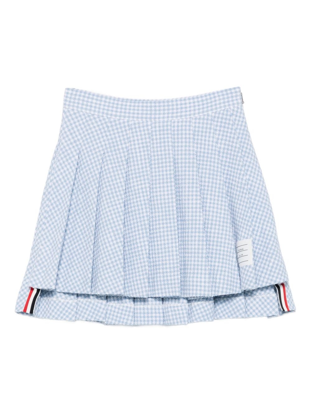 pleated checked mini skirt Highlights - Light blue - Concealed side zip fastening - Logo patch to the side - Rwb stripe Made in Italy Composition Cotton 92%, Polyamide 7%, Spandex/Elastane 1% SIZE & FIT Model measurements Height 5 ft 11 in(1.8 m) Bust/Chest 31.49 in(80 cm) Hips 36.61 in(93 cm) Waist 24.4 in(62 cm) Washing instructions Dry Clean Only