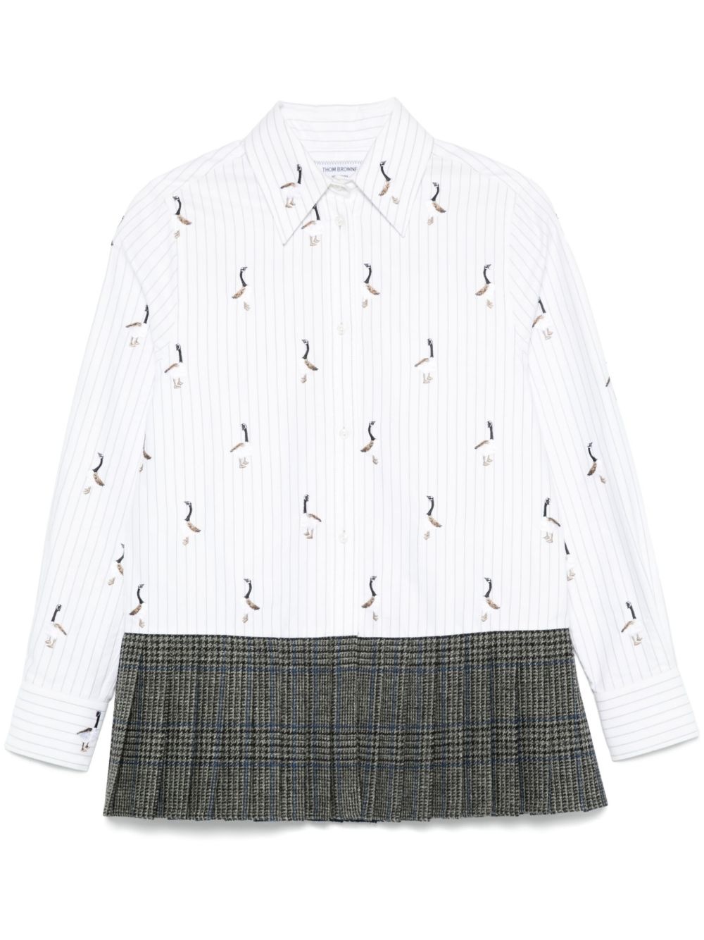 pleated-hem striped shirt Highlights - White - Front button placket - Buttoned cuffs - Rear keeper loop - All-over motif embroidery Made in Italy Composition Cotton 100%, Wool 100% SIZE & FIT Model measurements Height 5 ft 11 in(1.8 m) Bust/Chest 31.49 in(80 cm) Hips 35.82 in(91 cm) Waist 24.8 in(63 cm) FittingInformation Designed for a relaxed fit, this piece allows for comfort and movement when worn Made from a midweight non-stretch fabric Washing instructions Dry Clean Only