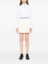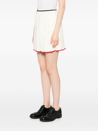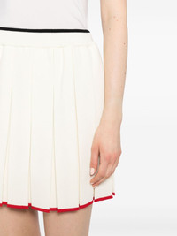 pleated knitted mini skirt Highlights - White - Virgin wool blend - Knitted construction - Fully pleated - Signature grosgrain loop tab - Contrasting trim - Ribbed waistband - Straight hem Made in Italy Composition Body: Virgin Wool 83%, Polyamide 15%, Elastane 2% SIZE & FIT Model measurements Height 5 ft 10 in(1.77 m) Bust/Chest 27.95 in(71 cm) Hips 34.64 in(88 cm) Waist 22.83 in(58 cm) FittingInformation This mini-length skirt is intended to be worn just below the waist The elasticated waist allows for a comfortable fit Made with a midweight knit, this piece offers some stretch This piece fits true to size – take your usual size Measurement HIPS 41.73 in(106 cm) LENGTH 16.53 in(42 cm) WAIST 25.19 in(64 cm)
