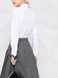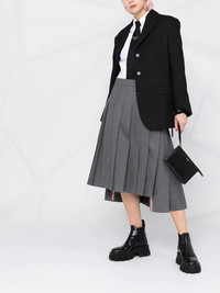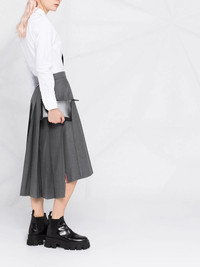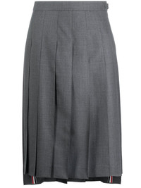 pleated midi skirt Let Thom Browne take you back to your school days. In a pleated design and midi length, this skirt is to remind you of sun-laden summer terms and sports days. Rock, paper, Thom Browne. Made in Italy Composition Lining: Cupro 100% Outer: Wool 100% SIZE & FIT Model measurements Height 5 ft 10 in(1.78 m) Bust/Chest 32.28 in(82 cm) Hips 35.03 in(89 cm) Waist 23.22 in(59 cm) FittingInformation This piece fits true to size. We recommend you get your regular size Designed to be fitted at the waist and hips, loose over the leg Made with a mid-weight non-stretch fabric Washing instructions Dry Clean Only