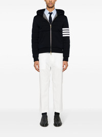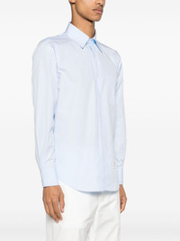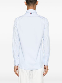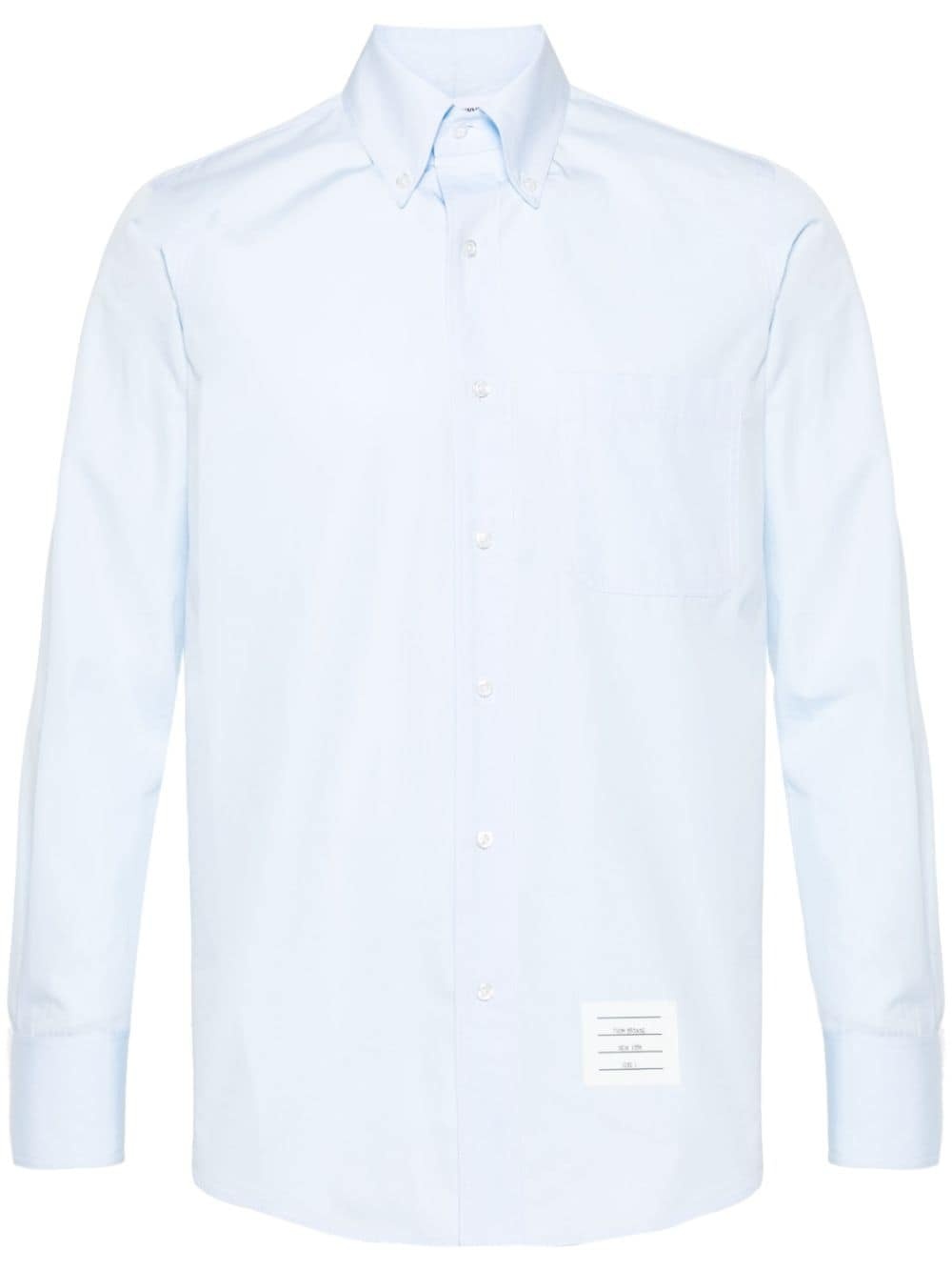 pointed-collar cotton shirt Midweight cotton poplin lends structure and a timeless feel to this Thom Browne shirt, cut in Italy to a relaxed fit and emblazoned with a signature 4-Bar patch at the front. Highlights - Alice blue - Cotton - Poplin texture - Rwb stripe - Logo patch to the front - Pointed flat collar - Front button fastening - Long sleeves with buttoned cuffs - Chest patch pocket - Curved hem Made in Italy Composition Cotton 100% SIZE & FIT Model measurements Height 6 ft 2 in(1.87 m) Bust/Chest 38.18 in(97 cm) Hips 36.61 in(93 cm) Waist 29.13 in(74 cm) FittingInformation Designed for a regular fit, allowing for a comfortably loose fit throughout the body Made from a midweight fabric This piece fits true to size – take your usual size
