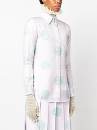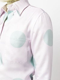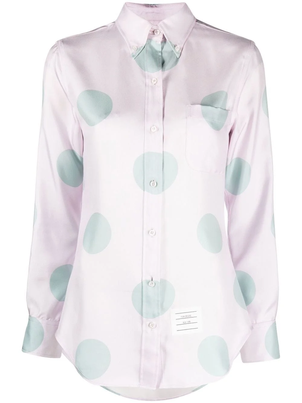 polka-dot silk long-sleeve shirt light pink silk bold polka dot print pointed flat collar logo patch to the front chest patch pocket front button fastening long sleeves buttoned cuffs curved hem Made in Italy Composition Silk 100% SIZE & FIT Model measurements Height 5 ft 11 in(1.8 m) Bust/Chest 31.88 in(81 cm) Hips 35.03 in(89 cm) Waist 24.01 in(61 cm) FittingInformation This piece fits true to size. We recommend you get your regular size Cut for a slim fit Made with a mid-weight non-stretch fabric