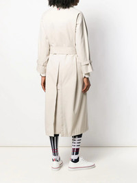 raglan-sleeve waterproof trench overcoat Every wardrobe needs a classic trench coat. Your wardrobe needs this belted trench coat from Thom Browne. We don't make the rules! Highlights - Beige - Classic collar - Front button fastening - Long sleeves - Rwb stripe - Buttoned cuffs - Belted waist - Mid-length Made in Italy Composition Lining: Silk 100% Outer: Polyester 65%, Cotton 35% SIZE & FIT Model measurements Height 5 ft 11 in(1.8 m) Bust/Chest 31.49 in(80 cm) Hips 35.82 in(91 cm) Waist 24.8 in(63 cm) FittingInformation Designed to be unstructured, offering a loose fit throughout The tie fastening gives an adaptable and personalised fit Made from a midweight non-stretch fabric This piece fits true to size – take your usual size Washing instructions Dry Clean Only