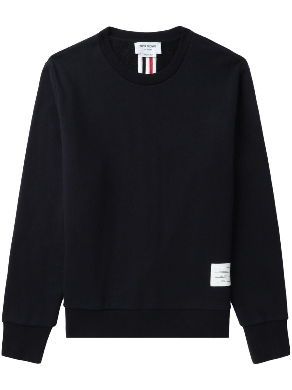 rear RWB stripe sweatshirt Thom Browne's signature RWB stripe stands out in this navy blue sweatshirt. The label's recognisable red, white and blue motif is seen on the rear in a large size. Highlights - Navy blue - Cotton - Rwb stripe - Crew neck - Long sleeves - Logo patch to the front - Ribbed cuffs - Ribbed hem Made in Italy Composition Cotton 100% SIZE & FIT Model measurements Height 6 ft 2 in(1.87 m) Bust/Chest 33.85 in(86 cm) Hips 35.82 in(91 cm) Waist 29.52 in(75 cm) Measurement CHEST 44.09 in(112 cm) LENGTH 23.62 in(60 cm) SLEEVE LENGTH 33.85 in(86 cm) Washing instructions Dry Clean Only