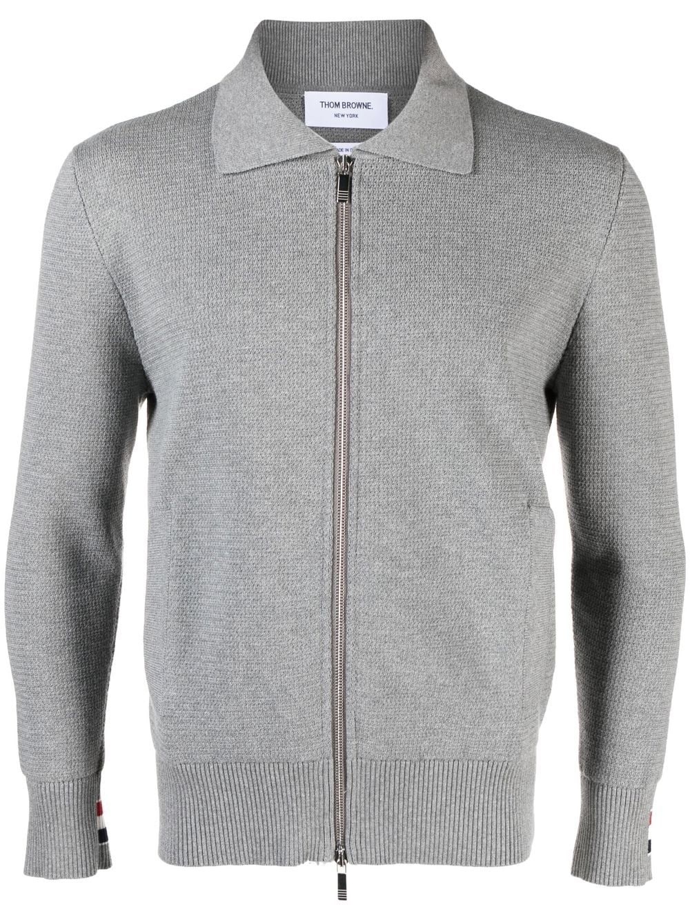 ribbed-detail knit cardigan ash grey cotton ribbed detailing front zip fastening long sleeves two side inset pockets Made in Italy Composition Cotton 100% SIZE & FIT Model measurements Height 6 ft 2 in(1.88 m) Bust/Chest 36.61 in(93 cm) Hips 35.82 in(91 cm) Waist 27.95 in(71 cm) FittingInformation This piece fits true to size. We recommend you get your regular size Cut for a relaxed fit Made with a mid-weight fabric Washing instructions Dry Clean Only