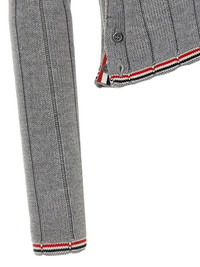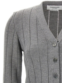 ribbed V-neck cardigan Highlights - Grey - Virgin wool - Ribbed knit - V-neck - Button front-fastening - Long sleeves - Striped trims Made in United Kingdom Composition Virgin Wool 100% Washing instructions Read Manufacturer Guidelines