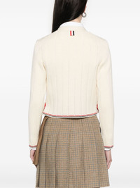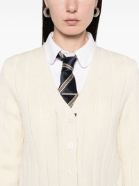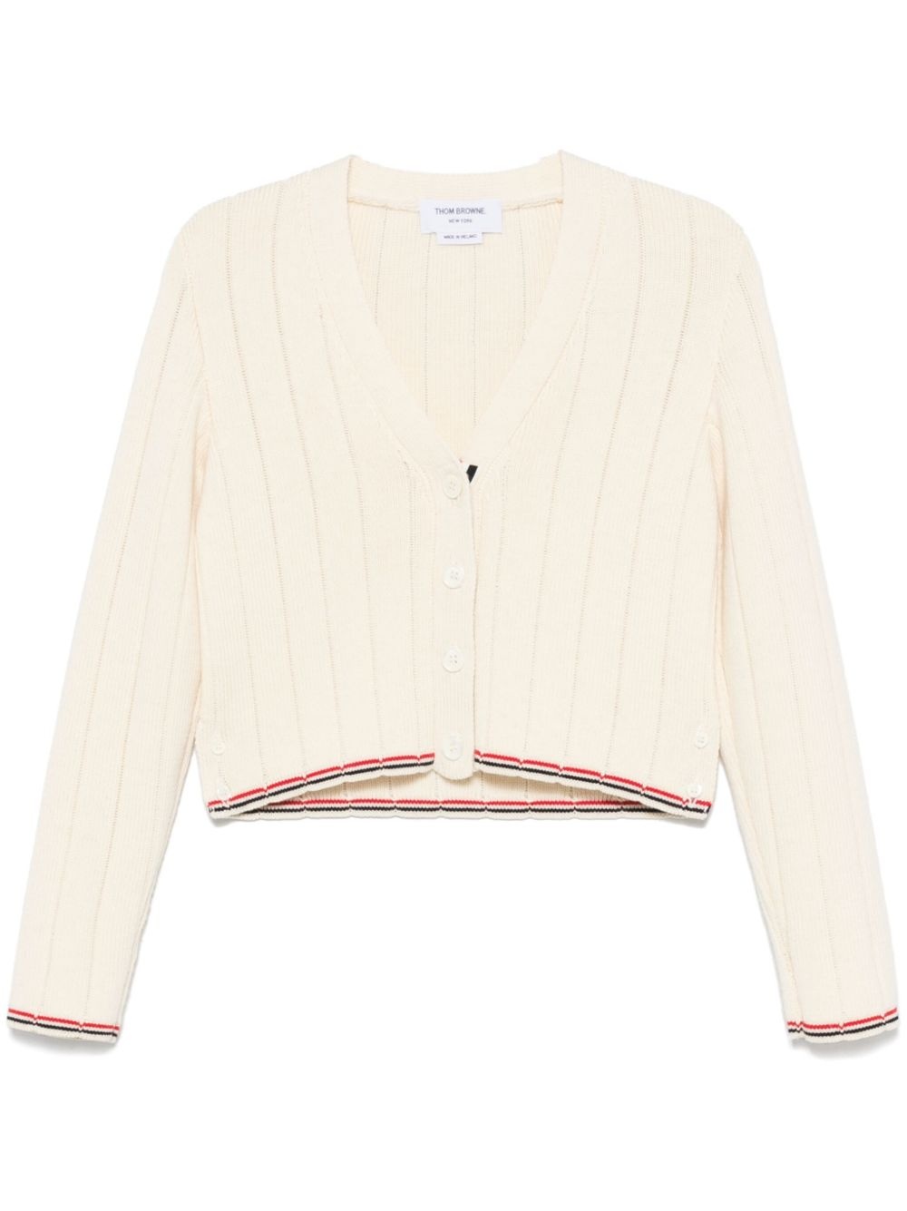 ribbed wool cardigan Highlights - White - Front button fastening - Side button fastening - Rwb stripe - Signature grosgrain side tabs Made in Italy Composition Virgin Wool 100% SIZE & FIT Model measurements Height 5 ft 9 in(1.76 m) Bust/Chest 32.28 in(82 cm) Hips 35.43 in(90 cm) Waist 25.19 in(64 cm) FittingInformation Designed for a slim fit that sits just away from the body offering a close yet comfortable fit