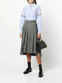 grosgrain armband long-sleeve Oxford shirt Thom Browne's signature grosgrain ribbon is seen throughout his collections, subtly detailing designs in unexpected ways. Here, the tricolour trim is applied to each sleeve of this long-sleeved cotton shirt. Made in Italy Composition Outer: Cotton 100% SIZE & FIT Model measurements Height 5 ft 10 in(1.77 m) Bust/Chest 29.92 in(76 cm) Hips 35.03 in(89 cm) Waist 24.01 in(61 cm) FittingInformation This piece fits true to size. We recommend you get your regular size Cut for a slim fit Made with a mid-weight fabric