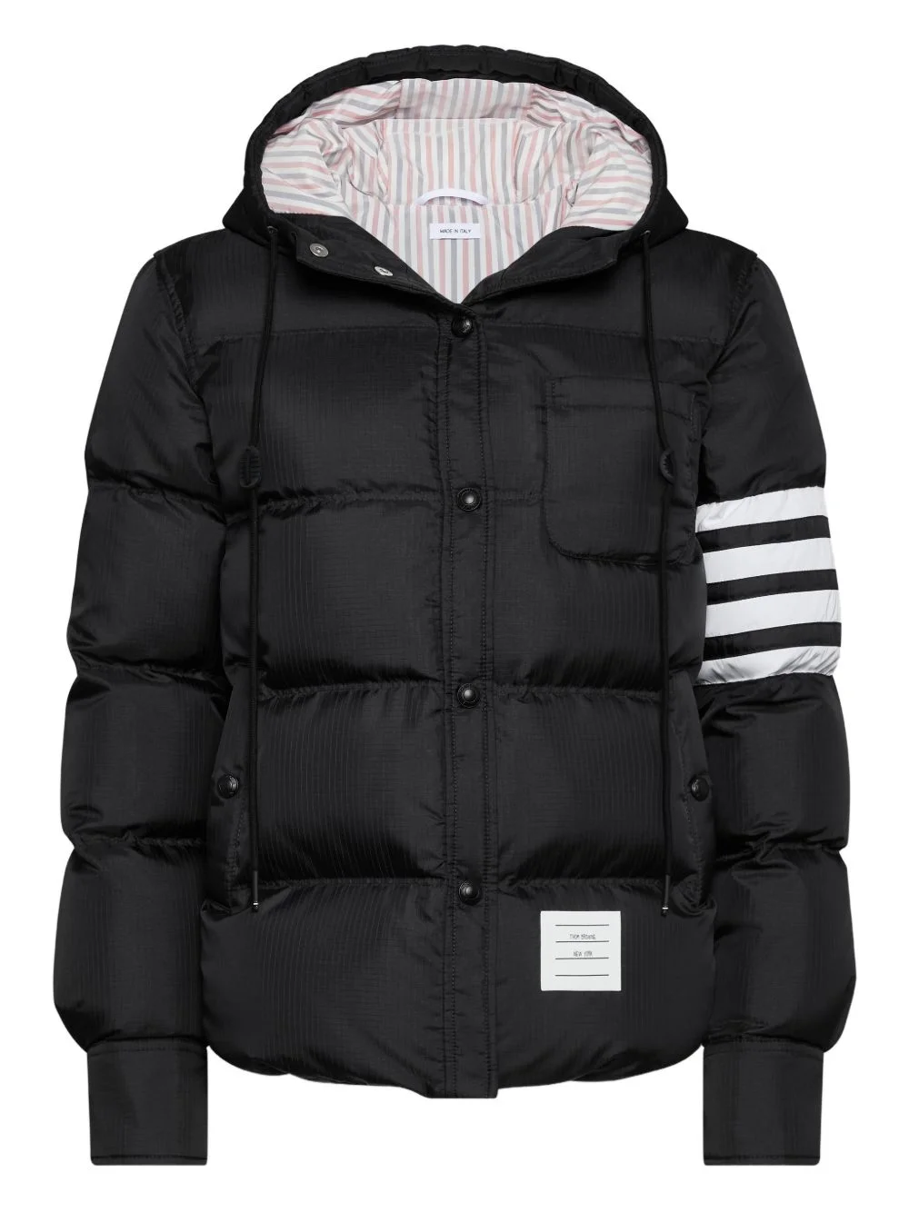 ripstop 4-bar jacket Highlights - Black - 4-bar stripe - Hooded - Button fastening - Chest pocket Made in Italy Composition Outer: Polyamide 81%, Polyester 19% Lining: Polyester 100%, Goose Down 80%, Goose Feather 20%