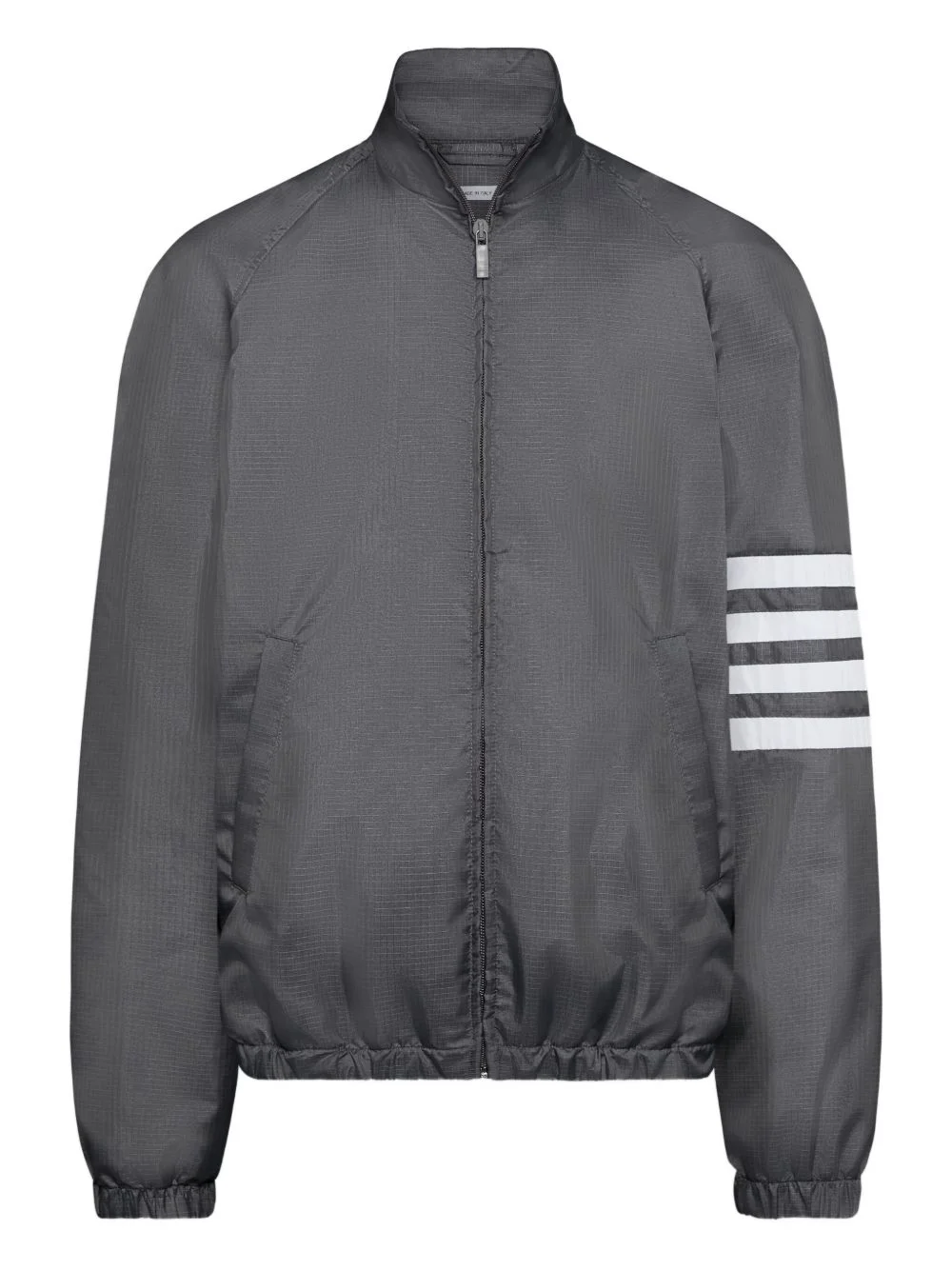 ripstop four-bar stripe-detail jacket Highlights - Grey - Raglan sleeves - Zip fastening - Four-bar stripe detail - Elasticated hem - High neck Made in Italy Composition Polyester 100% Washing instructions Read Manufacturer Guidelines
