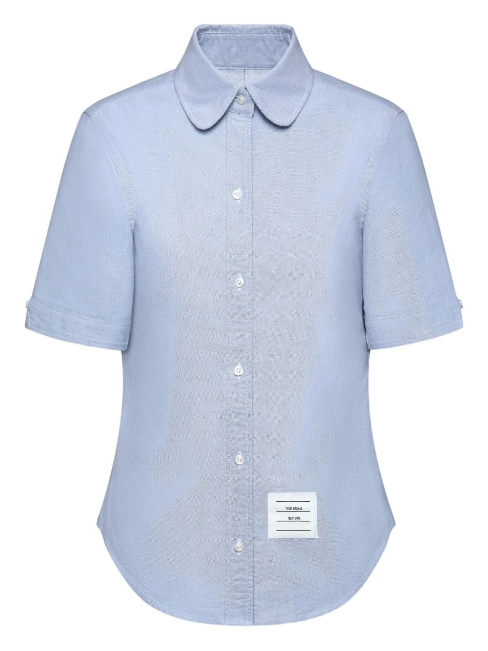 round-collar short-sleeve shirt Highlights - Light blue - Round collar - Short sleeves - Button fastening - Curved hem Made in Italy Composition Cotton 100% Washing instructions Read Manufacturer Guidelines