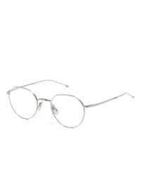 round-frame glasses Highlights - Grey - Titanium - Matte effect - Round frame - Clear lenses - Nose pads - Straight arms - Curved tips - All glasses from farfetch are sold as non-prescription frames. - These glasses come with a protective case. Imported Composition Titanium 100% SIZE & FIT Measurement Arm Length 5.51 in(14 cm) Bridge Width 0.82 in(2.1 cm) Lens Diameter 1.88 in(4.8 cm) Total Width 5.23 in(13.3 cm)