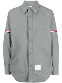 RWB armband pique shirt jacket Key Thom Browne details appear on this shirt, adding a branding-focused finish to the design. Signature RWB stripes are adorned at each sleeve, complemented by an understated logo patch to the front. Highlights - Medium grey - Cotton - Rwb stripe - Logo patch to the front - Classic collar - Long sleeves - Press-stud fastening - Chest patch pocket - Two side slit pockets - Curved hem Imported Composition Lining: Cotton 100% Outer: Polyamide 100% SIZE & FIT Model measurements Height 6 ft 2 in(1.87 m) Bust/Chest 33.07 in(84 cm) Hips 35.43 in(90 cm) Waist 26.77 in(68 cm) FittingInformation Designed for a regular fit, allowing for a comfortably loose fit throughout the body Made from a lightweight non-stretch fabric This piece fits true to size – take your usual size Washing instructions Dry Clean Only