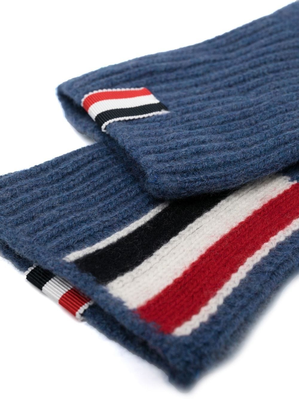RWB intarsia stripe gloves Designed for an instantly recognisable look thanks to an RWB tab and intarsia knit, these deep blue gloves are spun from delicate virgin wool as a nod to Thom Browne's penchant for key house motifs and fine materials. Imported Composition Virgin Wool 100%