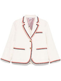 RWB-stripe blazer Highlights - White - Front button fastening - Chest patch pocket - Long sleeves - Two front patch pockets Made in Italy Composition Outer: Cotton 100% Lining: Cupro 100% SIZE & FIT Model measurements Height 5 ft 11 in(1.8 m) Bust/Chest 31.49 in(80 cm) Hips 35.82 in(91 cm) Waist 24.8 in(63 cm) FittingInformation Designed for a relaxed fit, this piece allows for comfort and movement when worn Made from a midweight non-stretch fabric