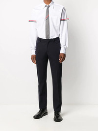 RWB stripe buttoned shirt A wardrobe staple with a twist. This RWB stripe buttoned number will put all your plain white shirts to shame. It's Thom Browne, and that's enough. Highlights - White - Cotton - Rwb stripe - Front button placket - Classic collar - Long sleeves - Buttoned cuffs - Chest patch pocket - Curved hem - Logo patch to the front Made in Italy Composition Cotton 100% SIZE & FIT Model measurements Height 6 ft 2 in(1.89 m) Bust/Chest 36.22 in(92 cm) Hips 35.82 in(91 cm) Waist 28.74 in(73 cm) Measurement CHEST 40.94 in(104 cm) SLEEVE LENGTH 25.19 in(64 cm) Shoulder Width 16.14 in(41 cm) WAIST 35.43 in(90 cm) Washing instructions Machine Wash