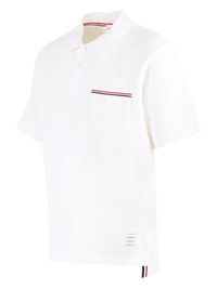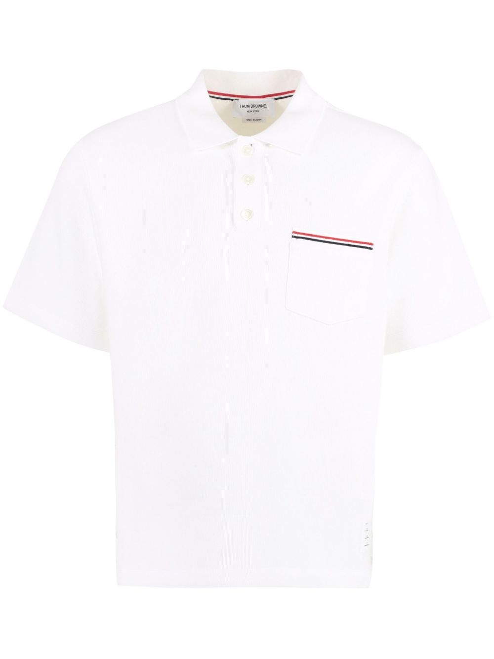 RWB-stripe cotton polo shirt A modern take on the polo shirt, this Thom Browne top has a spread collar that can be buttoned up to a high neck. The brand's signature RWB stripe trims the patch pocket for a branded touch. Imported Composition Cotton 100% SIZE & FIT FittingInformation This piece fits true to size. We recommend you get your regular size Cut for a slim fit Made with a mid-weight fabric Washing instructions Read Manufacturer Guidelines