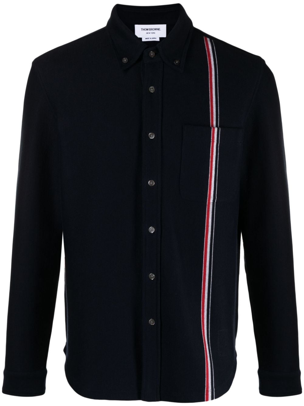 RWB-stripe cotton shirt jacket Highlights - Navy blue - Cotton - Knitted construction - Rwb stripe - Classic collar - Front button fastening - Drop shoulder - Long sleeves - Buttoned cuffs - Chest patch pocket - Curved hem - High-low hem Made in Italy Composition Cotton 100% SIZE & FIT Model measurements Height 6 ft 2 in(1.87 m) Bust/Chest 36.41 in(92.5 cm) Hips 37 in(94 cm) Waist 29.52 in(75 cm) FittingInformation Designed for a regular fit, allowing for a comfortably loose fit throughout the body Made from a midweight non-stretch fabric, this piece offers minimal elasticity when worn This piece fits true to size – take your usual size