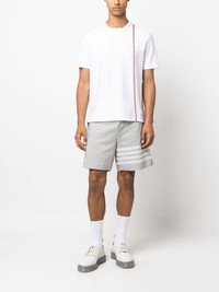RWB stripe cotton T-shirt Made from cotton, this white T-shirt is infused with Thom Browne's signature aesthetic. Featuring a buttoned step hem, the silhouette is crossed by the recognisable RWB grosgrain trim -- a celebration of the label's American roots. Highlights - White/red/navy blue - Cotton - Jersey knit - Grosgrain ribbon trim - Rwb stripe - Signature grosgrain side tabs - Crew neck - Short sleeves - Step hem Made in Italy Composition Outer: Cotton 100% SIZE & FIT Model measurements Height 6 ft 2 in(1.87 m) Bust/Chest 38.18 in(97 cm) Hips 36.61 in(93 cm) Waist 29.13 in(74 cm) Measurement CHEST 39.37 in(100 cm) SLEEVE LENGTH 16.92 in(43 cm)